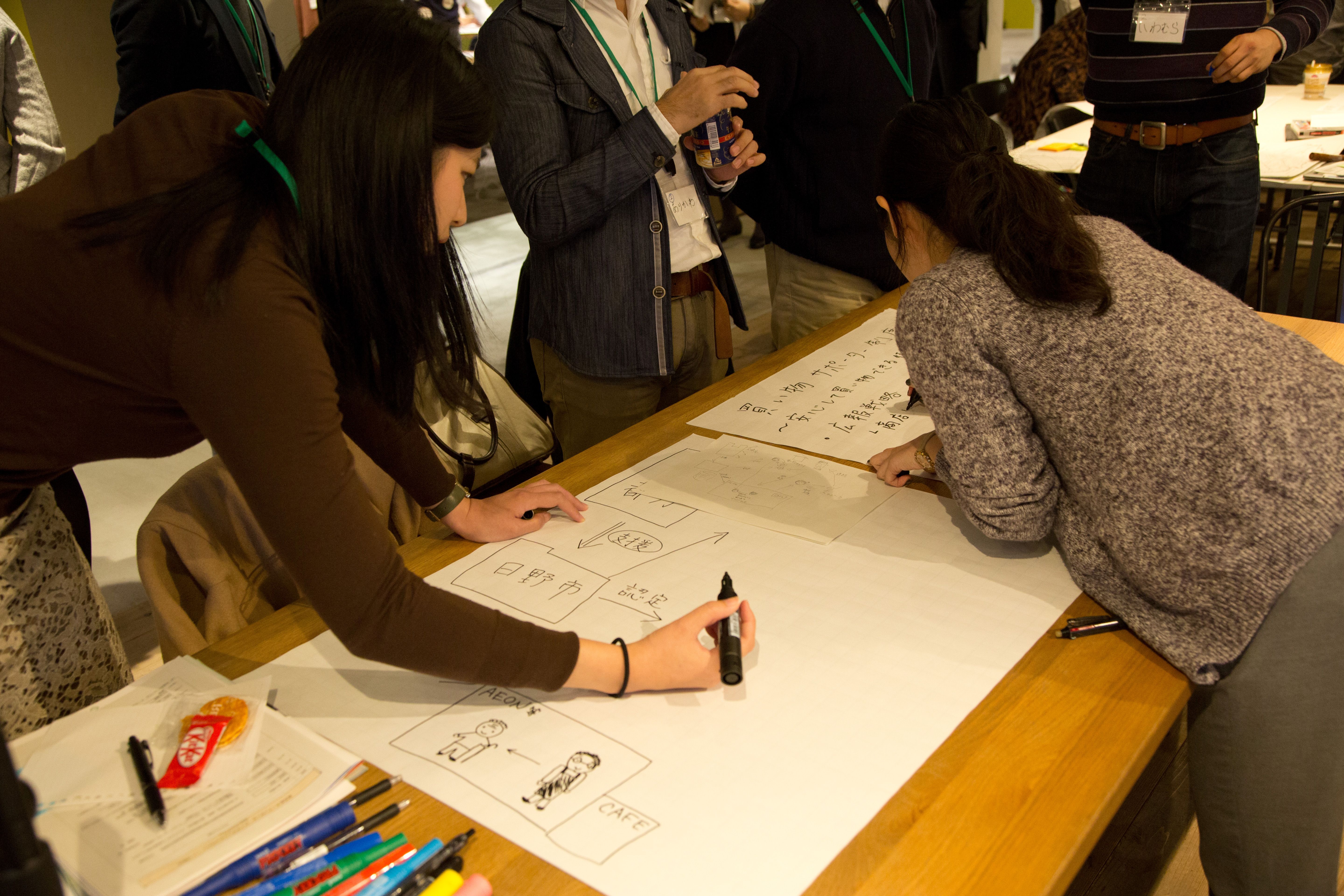 課題解決に向けた具体的なアイデア(解決策やそのためのアプリ、アプリに活用するデータ等)をグループ内で議論し、形にしていきます。必要に応じて主催者側で進行を補助します。 |