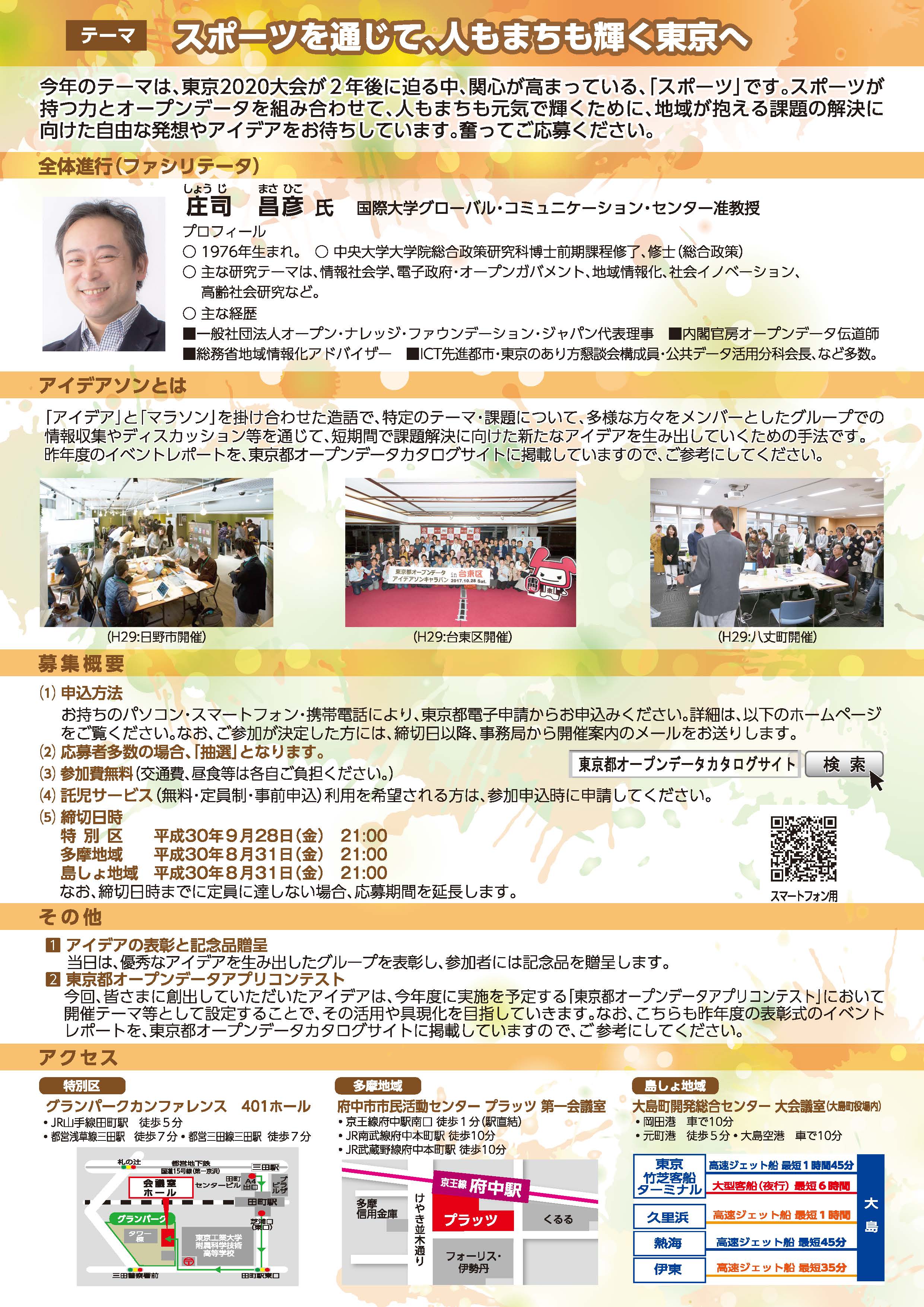 ◆募集期間の延長について多摩地域・島しょ地域について、募集期間を延長します。なお、延長期間においては、「先着順」とさせていただき、各開催地域の定員に達し次第、募集終了となります。あらかじめご了承ください。 ※多摩地域について、募集は終了しました。 ※島しょ地域について、募集は終了しました。 (H30.9.5更新) |