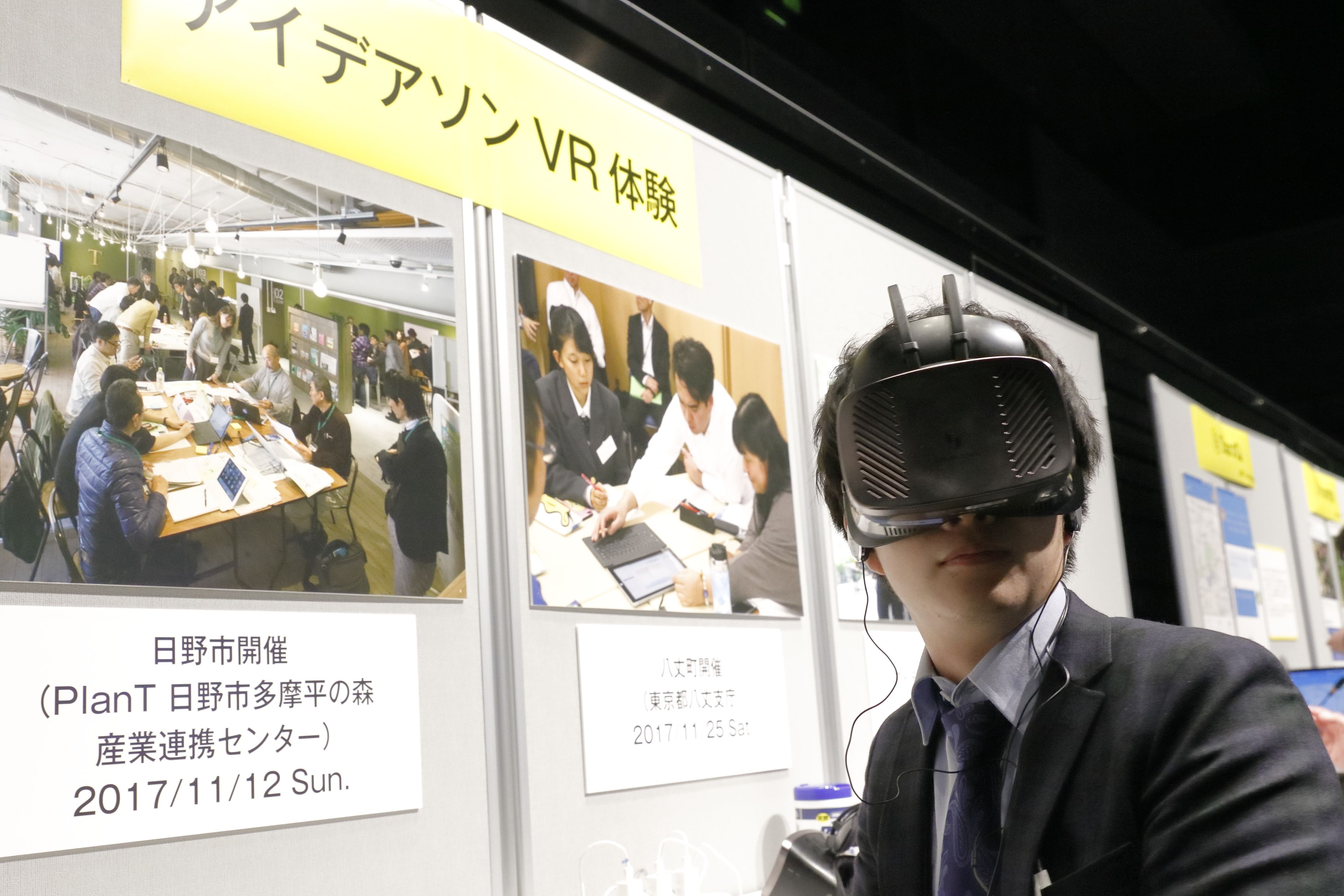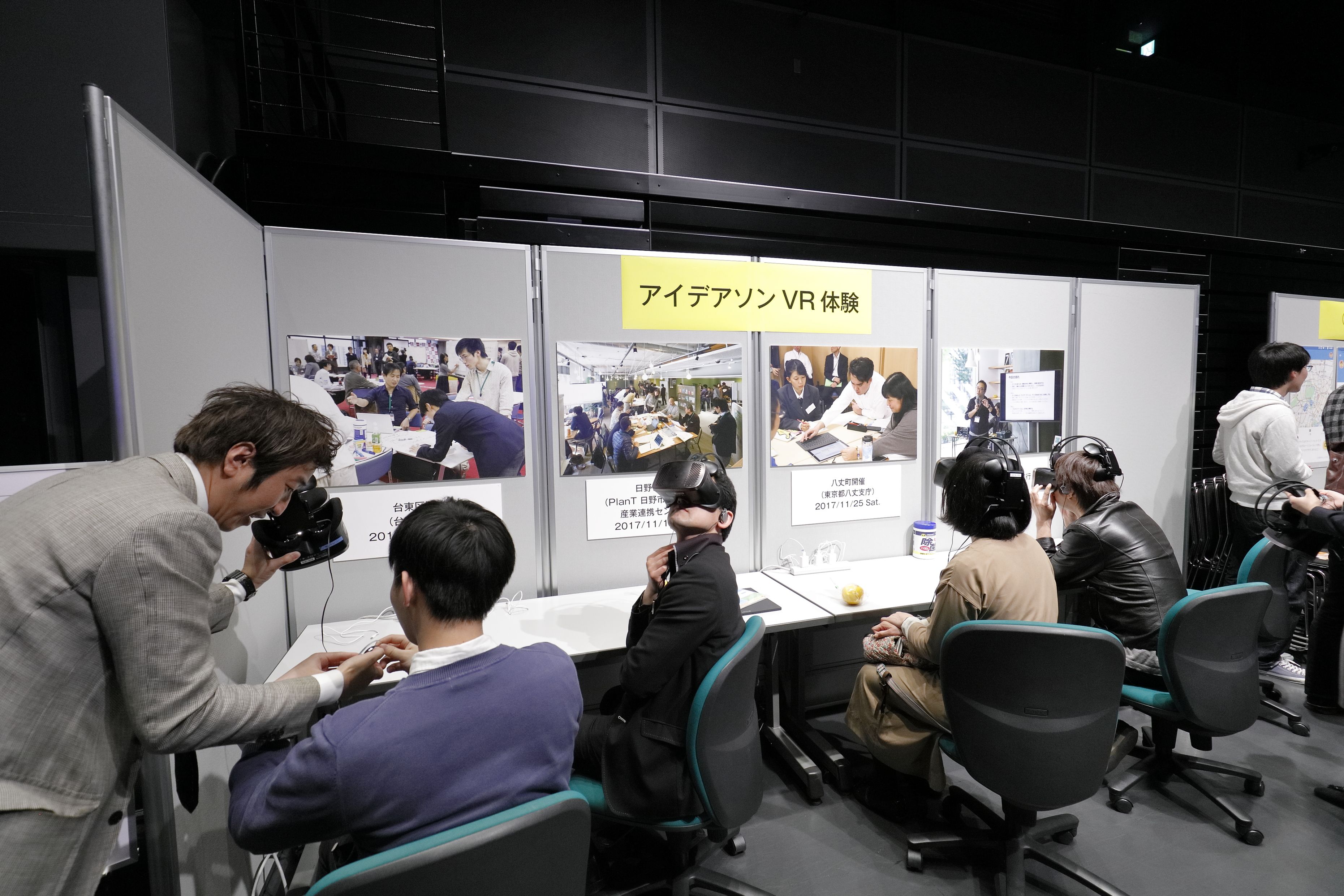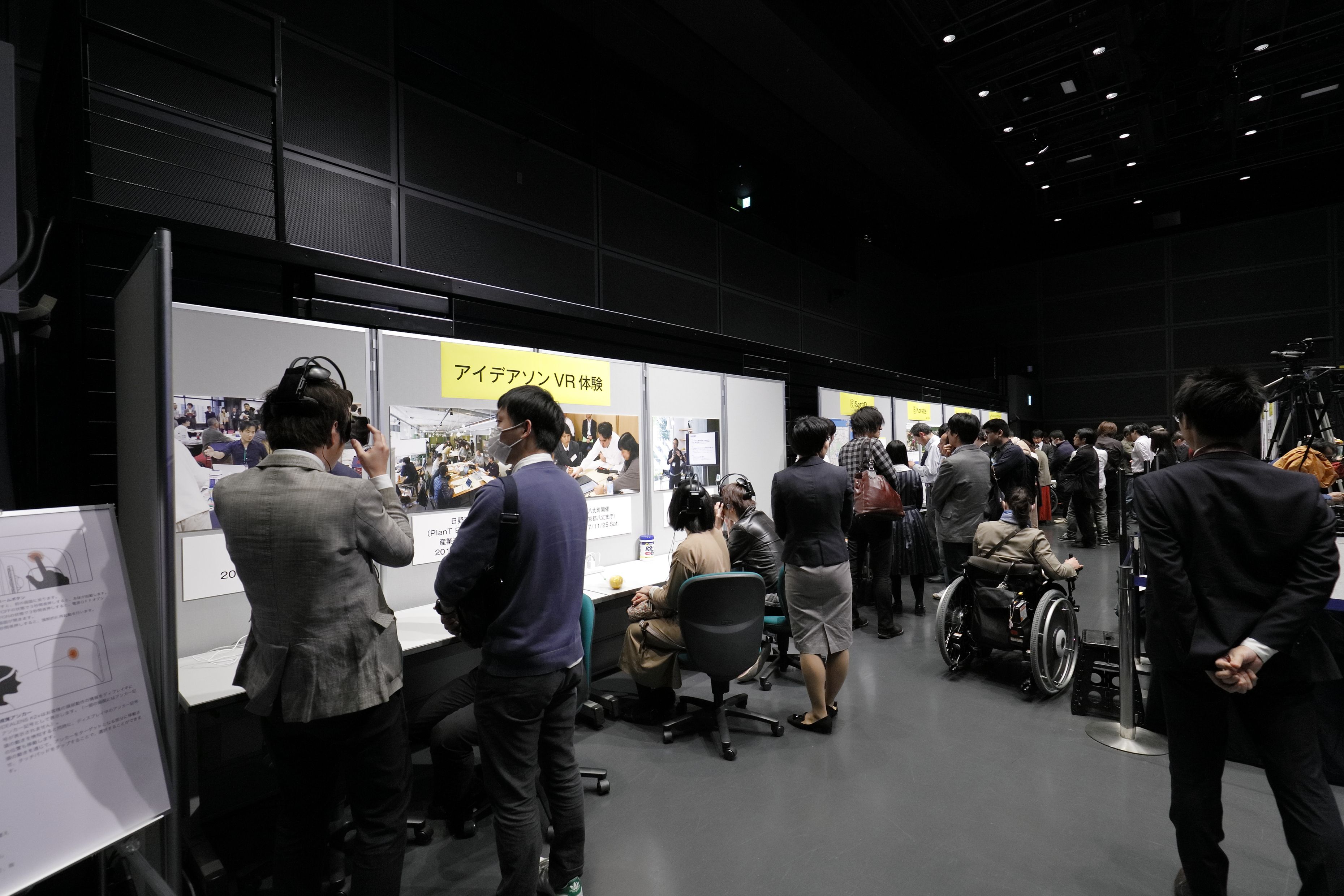 表彰作品の展示スペースやVR映像の体験(アイデアソンの開催風景)スペースを設置し、多くのご来場の皆さまに操作・体験していただきました。