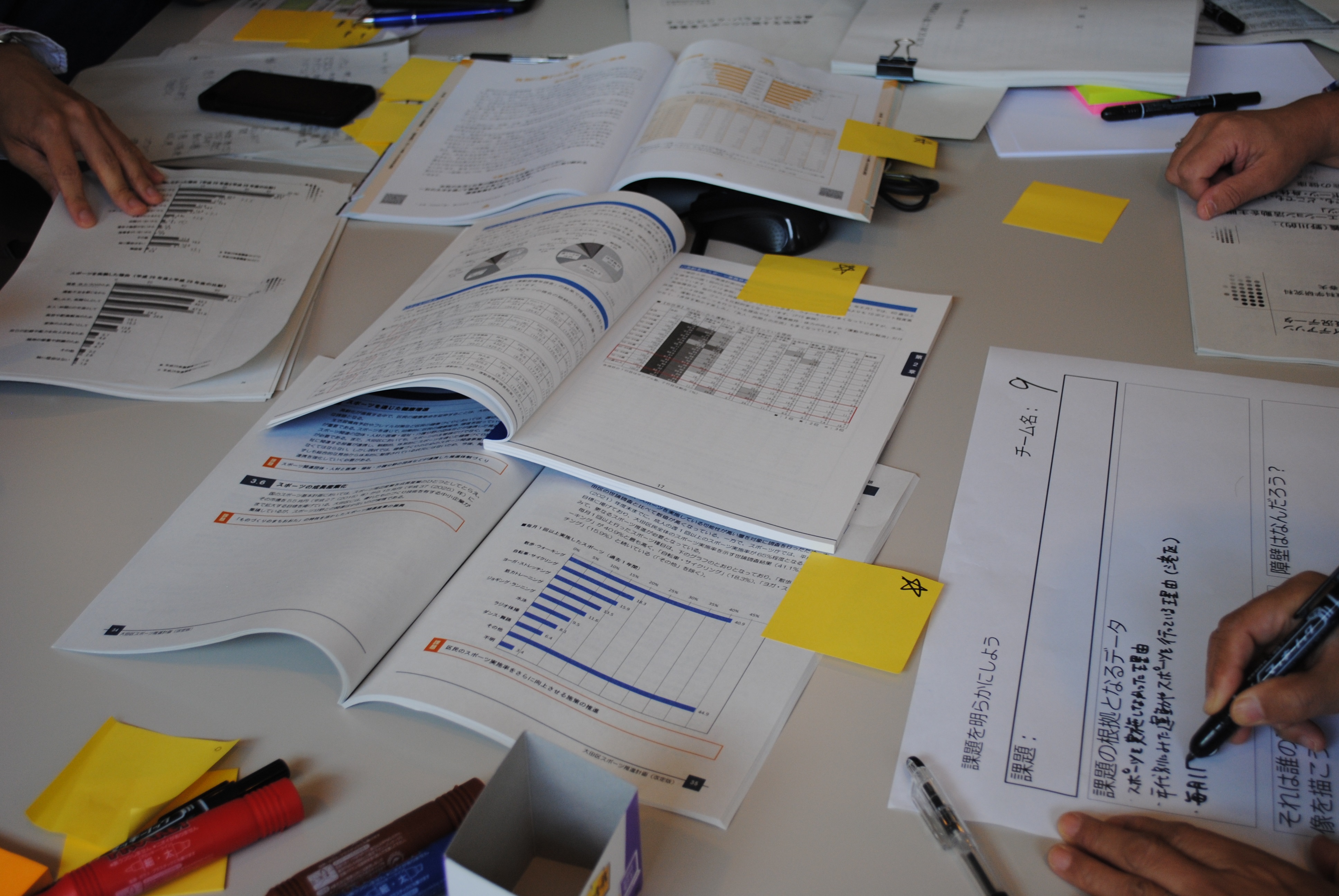 インターネットや関連資料等をもとに、各グループで情報収集を行い、解決すべき課題の根拠や、課題解決に活用できそうなデータを探していきます。